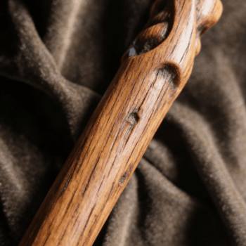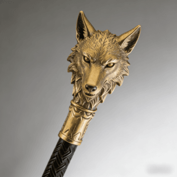 This handcrafted wolf head scepter combines intricate artistry with functional design: