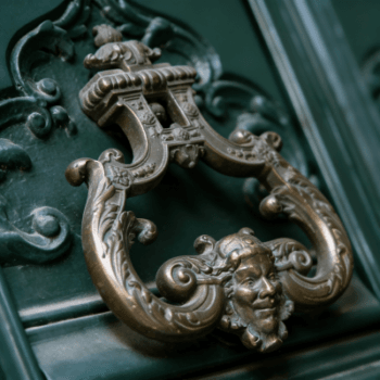 - Antique Ornate Metal Door Handle with Lion Accent