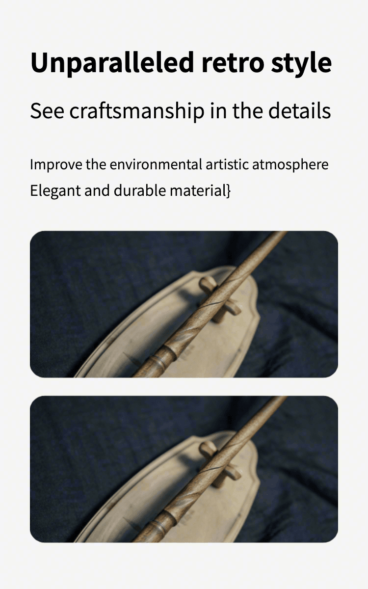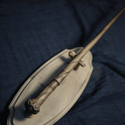 This handcrafted twisted wooden magic wand is meticulously carved by skilled artisans, featuring a natural wood texture and vintage finish that captures the essence of wizarding world charm. Each piece is uniquely made, with a smooth, ergonomic design perfect for comfortable handling—ideal for Harry Potter cosplay, fantasy-themed events, or adding to your magic wand collection. Durably crafted to maintain its detailed texture, this wand brings a touch of authentic wizardry to any fan’s repertoire.