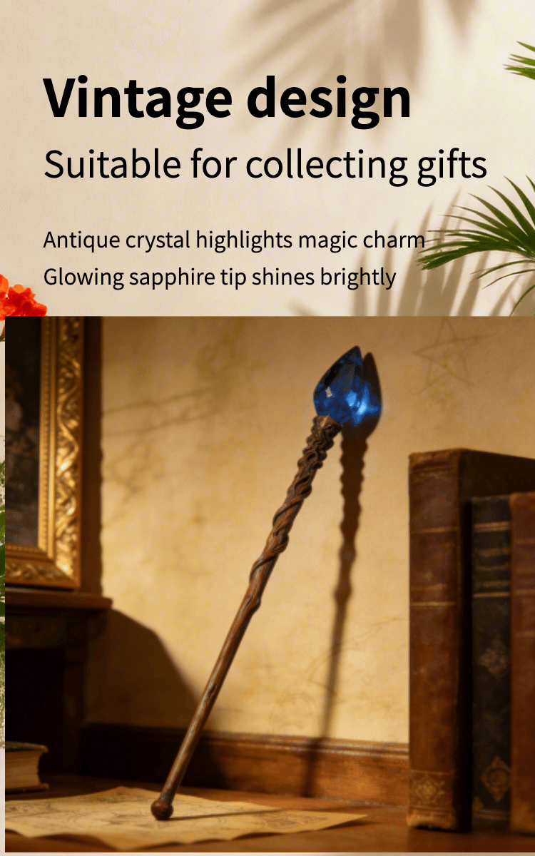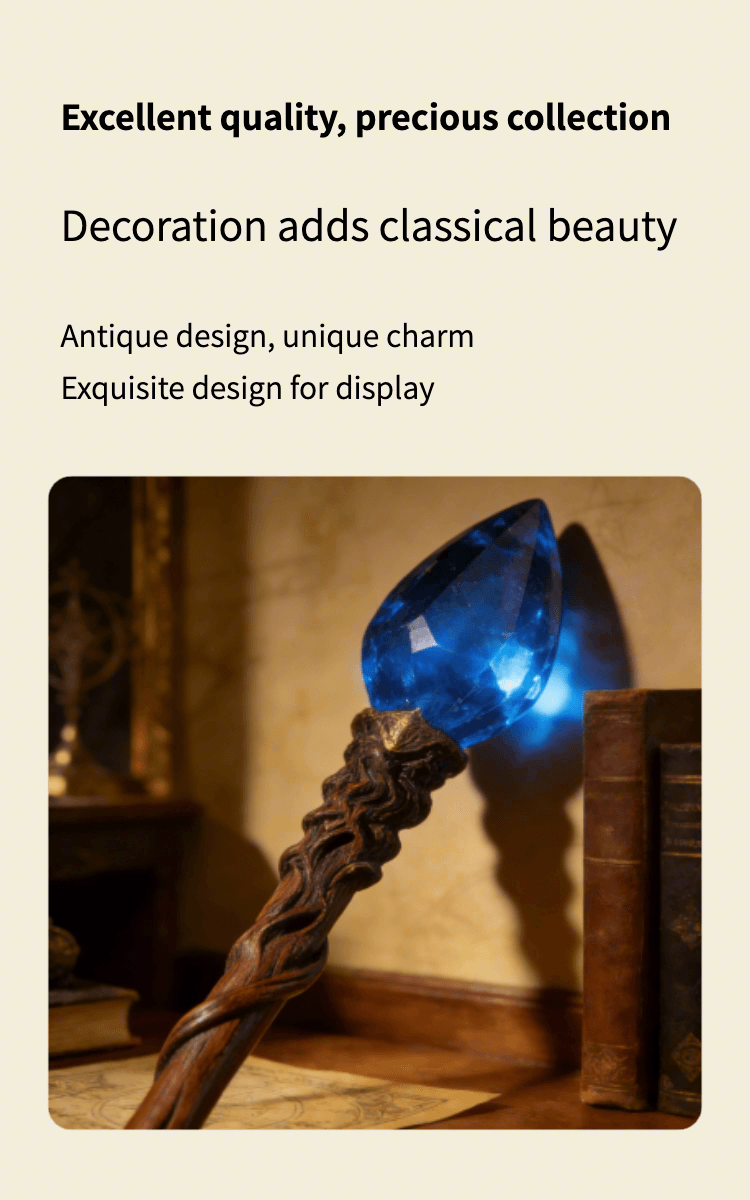This handmade wizard wand features a detailed, vintage-inspired design crafted for fantasy enthusiasts, cosplayers, and Halloween costume lovers. Each piece is artisanal—with a textured, realistic finish that captures the charm of classic wizard lore. It comes packaged in an elegant gift box, making it ideal for gifting or personal collection. Lightweight yet durable, this magic wand is a versatile prop for role-play, themed events, or display.