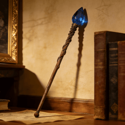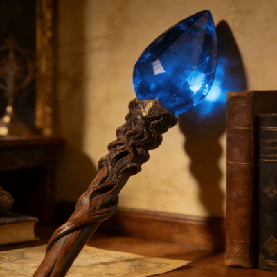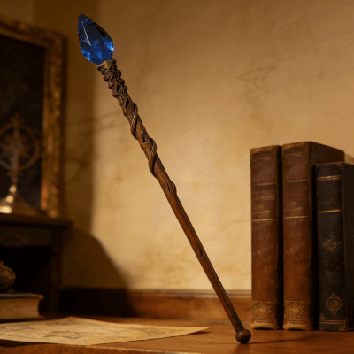 Artisan Wizard Wand with Glowing Blue Crystal for Cosplay