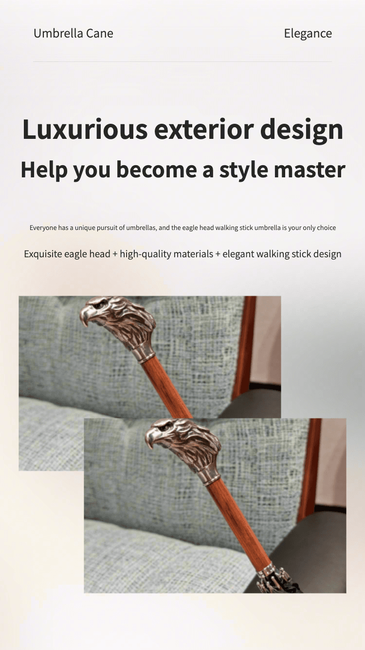This handmade cane umbrella combines functionality with luxury design, featuring an exquisite eagle head handle (crafted from durable metal) and a smooth wooden shaft for comfortable grip. The umbrella canopy is made of waterproof fabric, paired with windproof ribs to withstand strong gusts—ideal for daily use or outdoor occasions. It serves as both a practical umbrella and an elegant walking stick, perfect for gentlemen seeking a unique, high-quality accessory. Each piece is carefully crafted to ensure durability and aesthetic appeal, making it a standout item in any collection.