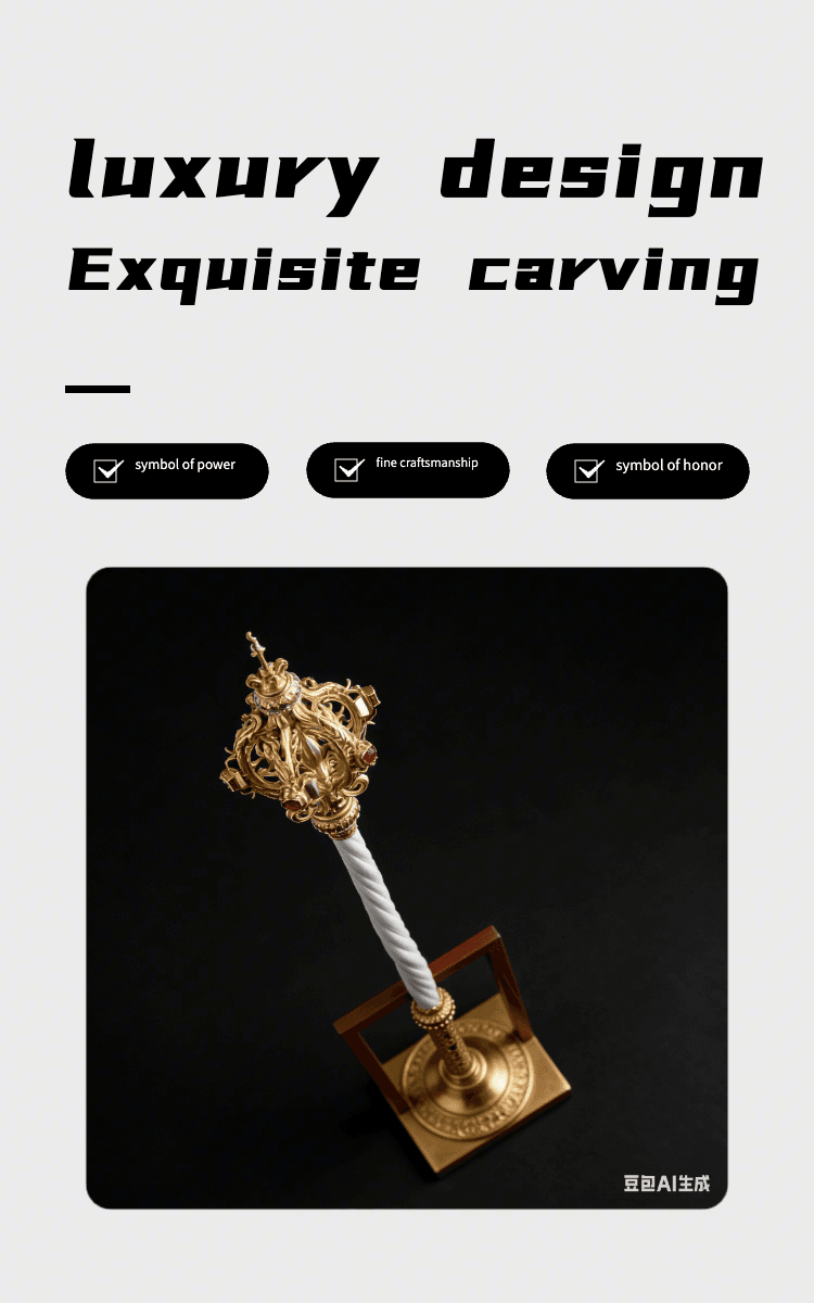 This is a premium handmade craft scepter, crafted by skilled artisans with elaborate carving techniques, every detail shows the ingenuity of handwork. It adopts classic vintage royal style, with smooth lines and delicate texture, not only a perfect prop for cosplay, theme parties and stage performances, but also a distinctive ornament for home, study and shop display. Made of high-quality material, it is sturdy and durable, not easy to damage, and can be kept for a long time. It is also a unique and thoughtful gift for friends, family and craft lovers on festivals, birthdays and special occasions, showing your sincere wishes with this exquisite handcrafted work.