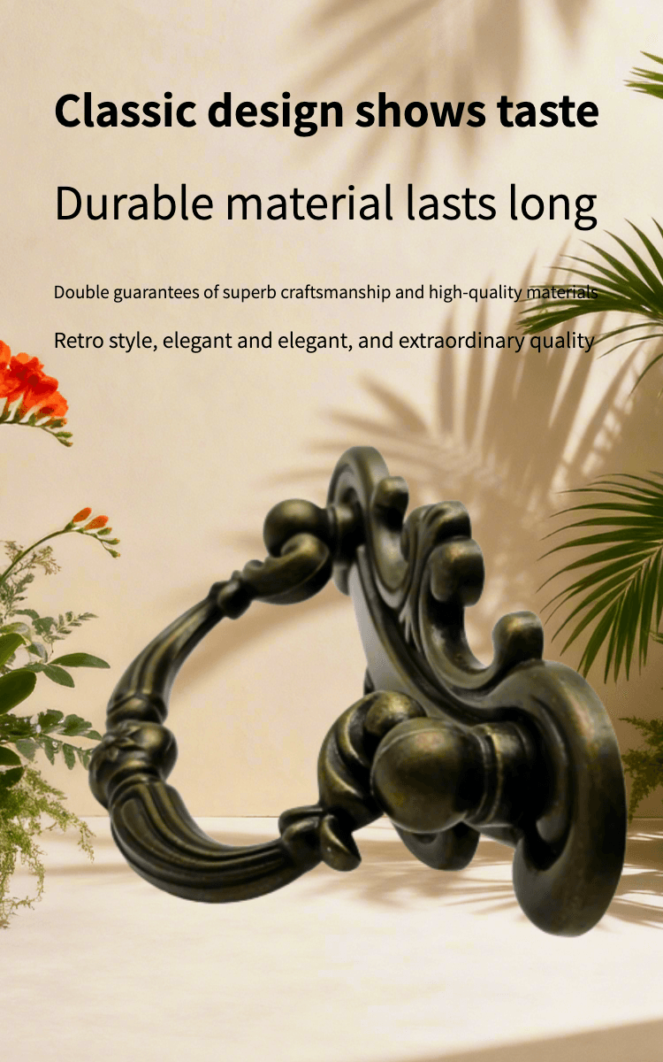 Elevate your space with this exquisitely crafted ornate antique bronze retro door handle—a perfect blend of classic baroque design and durable metal construction. Featuring intricate floral carvings and a rich aged-brass finish, this handle adds timeless charm to vintage furniture, kitchen cabinets, bathroom vanities, or bedroom drawers.