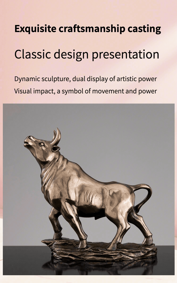Bronze-style bull statue: home/office decor, good luck feng shui gift