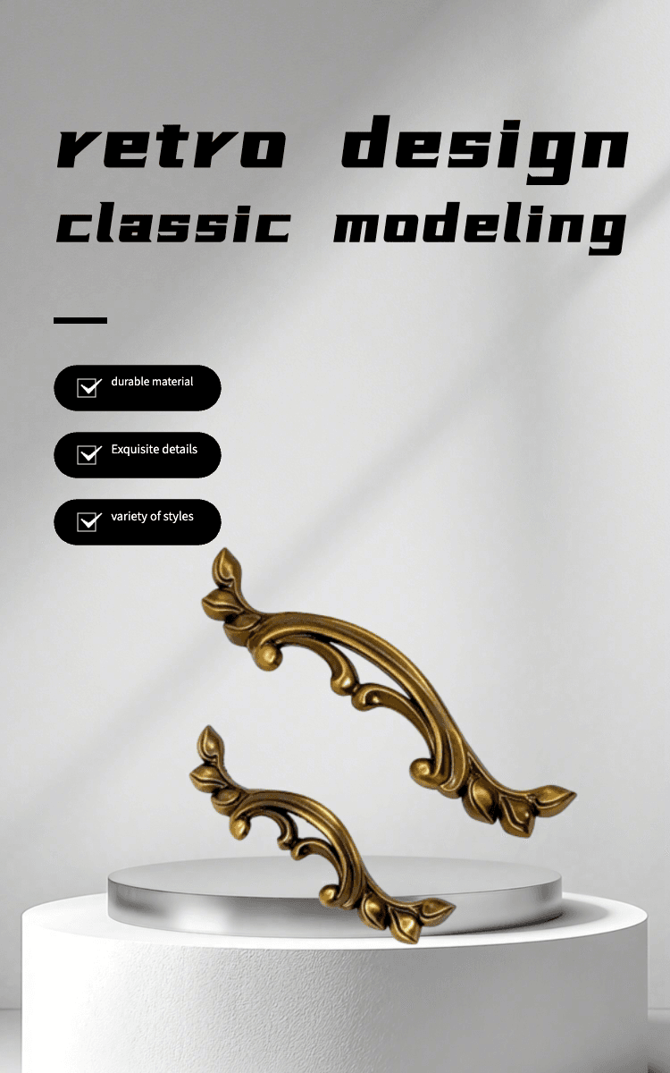 Elevate your space with this exquisitely crafted ornate antique bronze retro door handle—a perfect blend of classic baroque design and durable metal construction. Featuring intricate floral carvings and a rich aged-brass finish, this handle adds timeless charm to vintage furniture, kitchen cabinets, bathroom vanities, or bedroom drawers.
