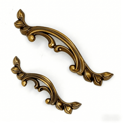 These vintage brass door handles feature an elegant curved & carved design, finished in distressed antique bronze to match retro, rustic, or classic furniture styles. Perfect for upgrading wardrobes, cabinets, dressers, or cupboards—each handle combines decorative charm with durable zinc alloy construction (mimicking solid brass texture). Easy to install with standard hardware, they add a timeless, ornate touch to kitchen, bedroom, or living room furniture. Suitable for both residential and commercial spaces (e.g., boutique shops, vintage-themed cafes).