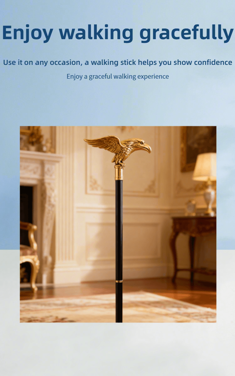 Handmade by artisans, this cane features premium solid wood and an intricately detailed golden eagle-head handle. Sleek, durable, and rich with artisanal charm—it’s a functional accessory crafted with meticulous care.