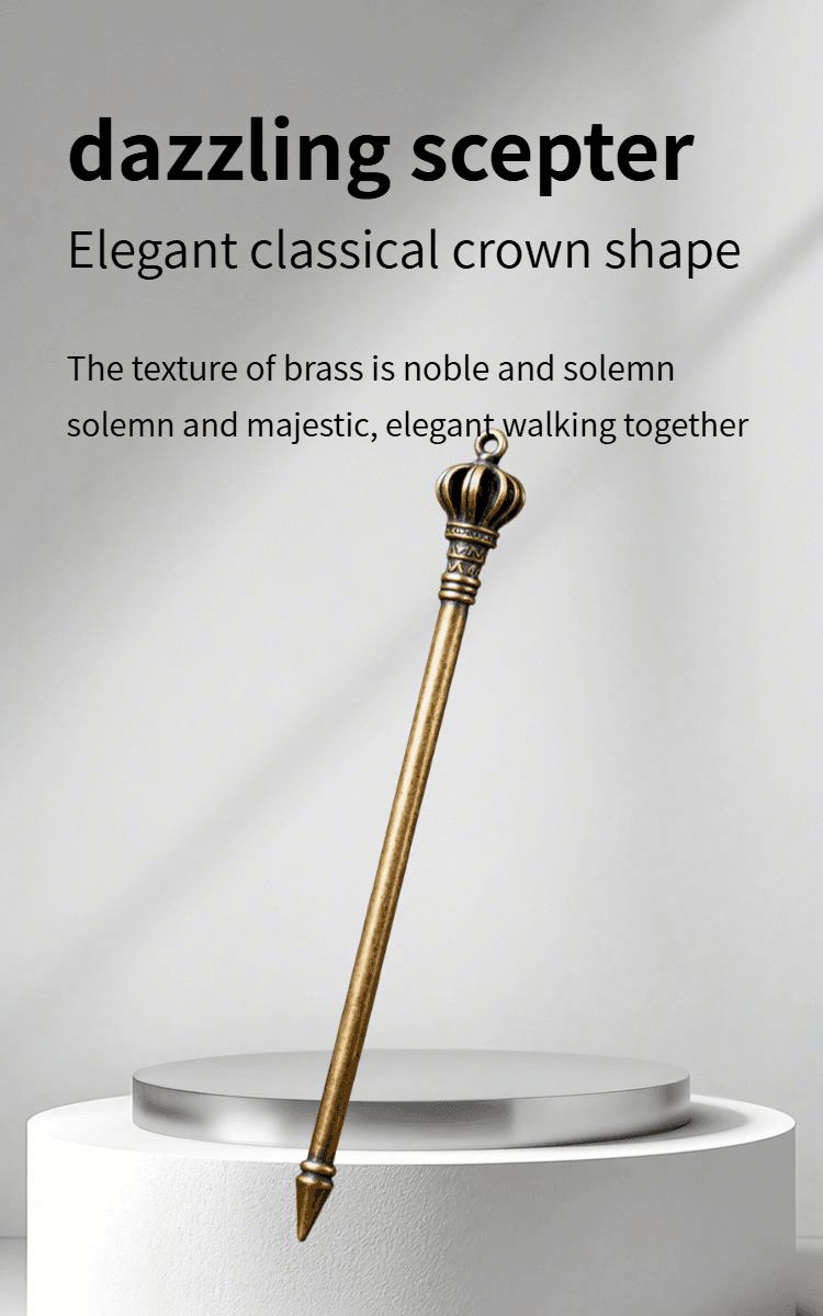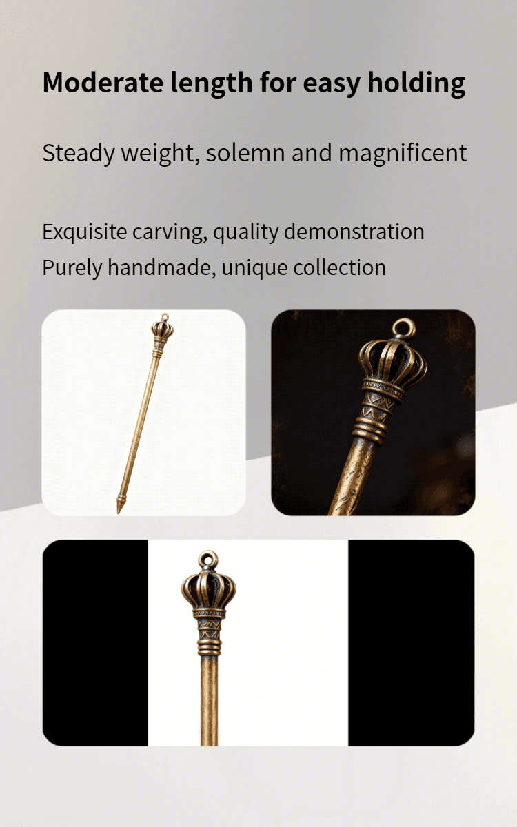 This is a premium handmade craft scepter, crafted by skilled artisans with elaborate carving techniques, every detail shows the ingenuity of handwork. It adopts classic vintage royal style, with smooth lines and delicate texture, not only a perfect prop for cosplay, theme parties and stage performances, but also a distinctive ornament for home, study and shop display. Made of high-quality material, it is sturdy and durable, not easy to damage, and can be kept for a long time. It is also a unique and thoughtful gift for friends, family and craft lovers on festivals, birthdays and special occasions, showing your sincere wishes with this exquisite handcrafted work.
