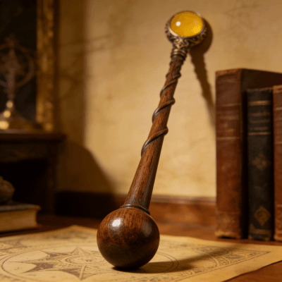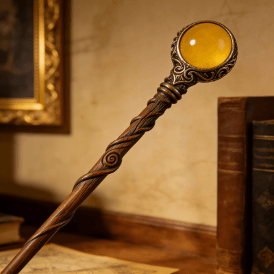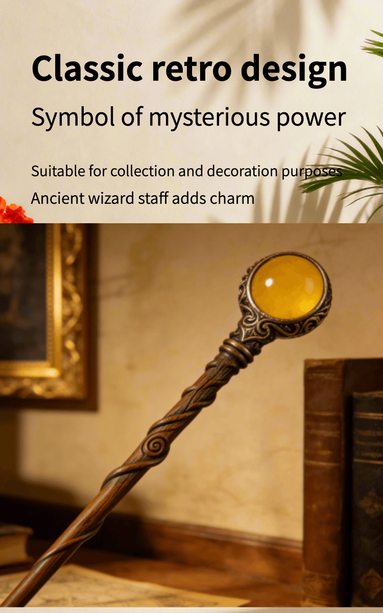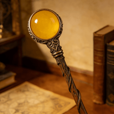 This exquisitely handmade magic wand blends artisanal craftsmanship with vintage fantasy charm. Carved from smooth, twisted wood and adorned with an ornate bronze setting holding a glowing yellow gemstone, it’s designed for fantasy enthusiasts, cosplay lovers, or collectors of unique witchcraft-inspired decor. Each piece is meticulously crafted to capture a timeless, mystical aesthetic—perfect as a display piece, costume accessory, or a special gift for fans of wizardry and folklore. Durably made with attention to detail, this wand brings a touch of enchanted elegance to any collection.