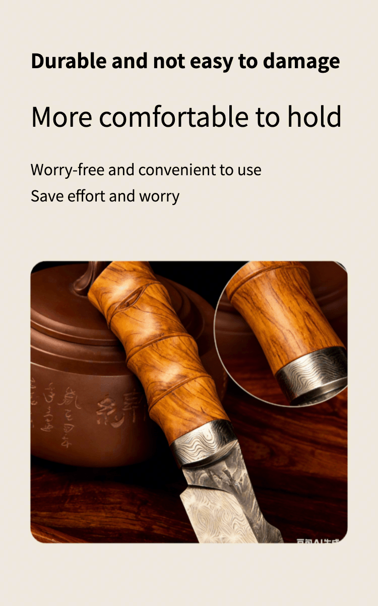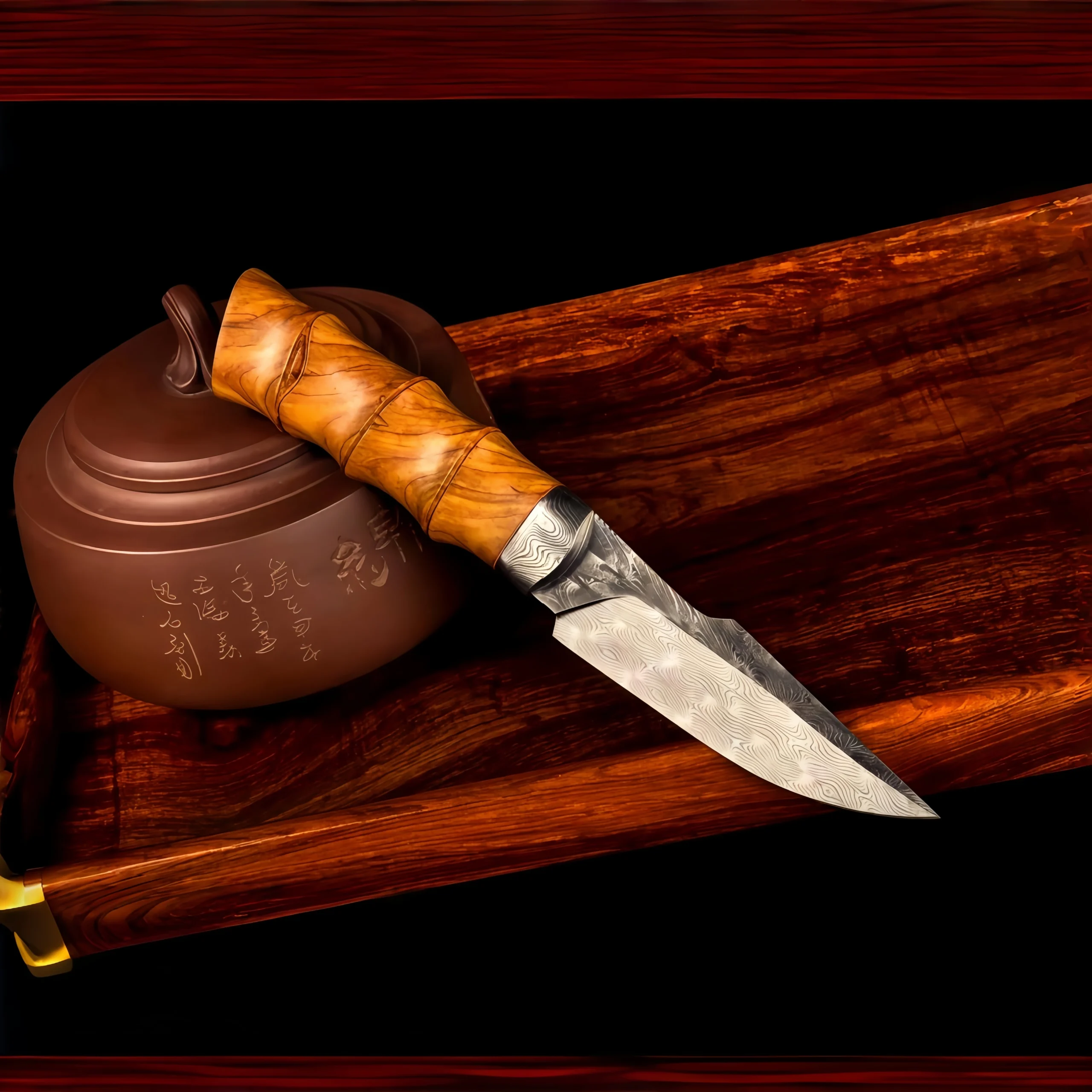 This premium handmade Damascus steel knife features a stunning wavy pattern blade (known for exceptional sharpness and durability) paired with a unique bamboo-textured olive wood handle—combining elegance and grip. The exquisite engraved details add a luxurious touch, making it ideal for daily carry, outdoor tasks, or as a high-end collection piece. Lightweight yet sturdy, it’s a perfect gift for knife enthusiasts or anyone seeking a functional, eye-catching tool.