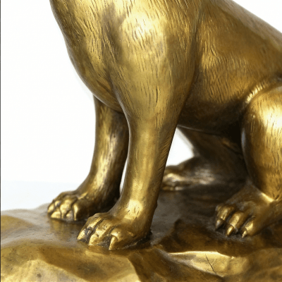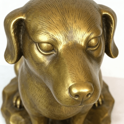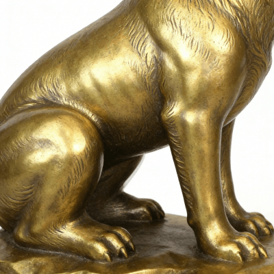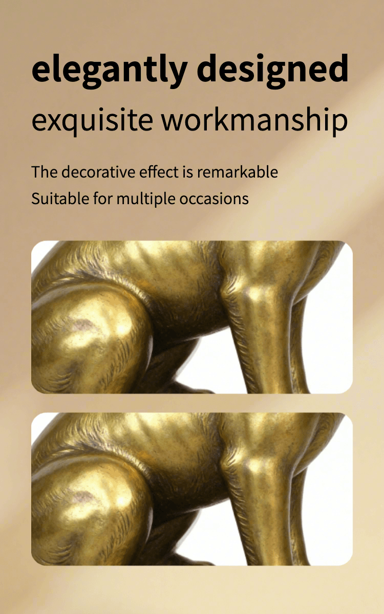 This brass sitting dog statue is a meticulously crafted metal art piece, designed to add elegance to your space. Made of high-quality golden-toned metal, it features a lifelike sitting dog shape with smooth finishes and delicate details—showcasing fine craftsmanship.