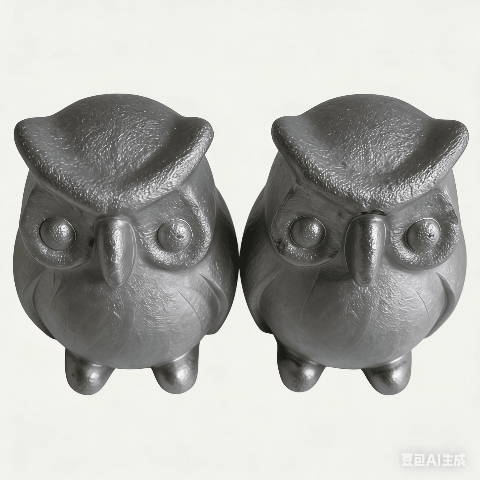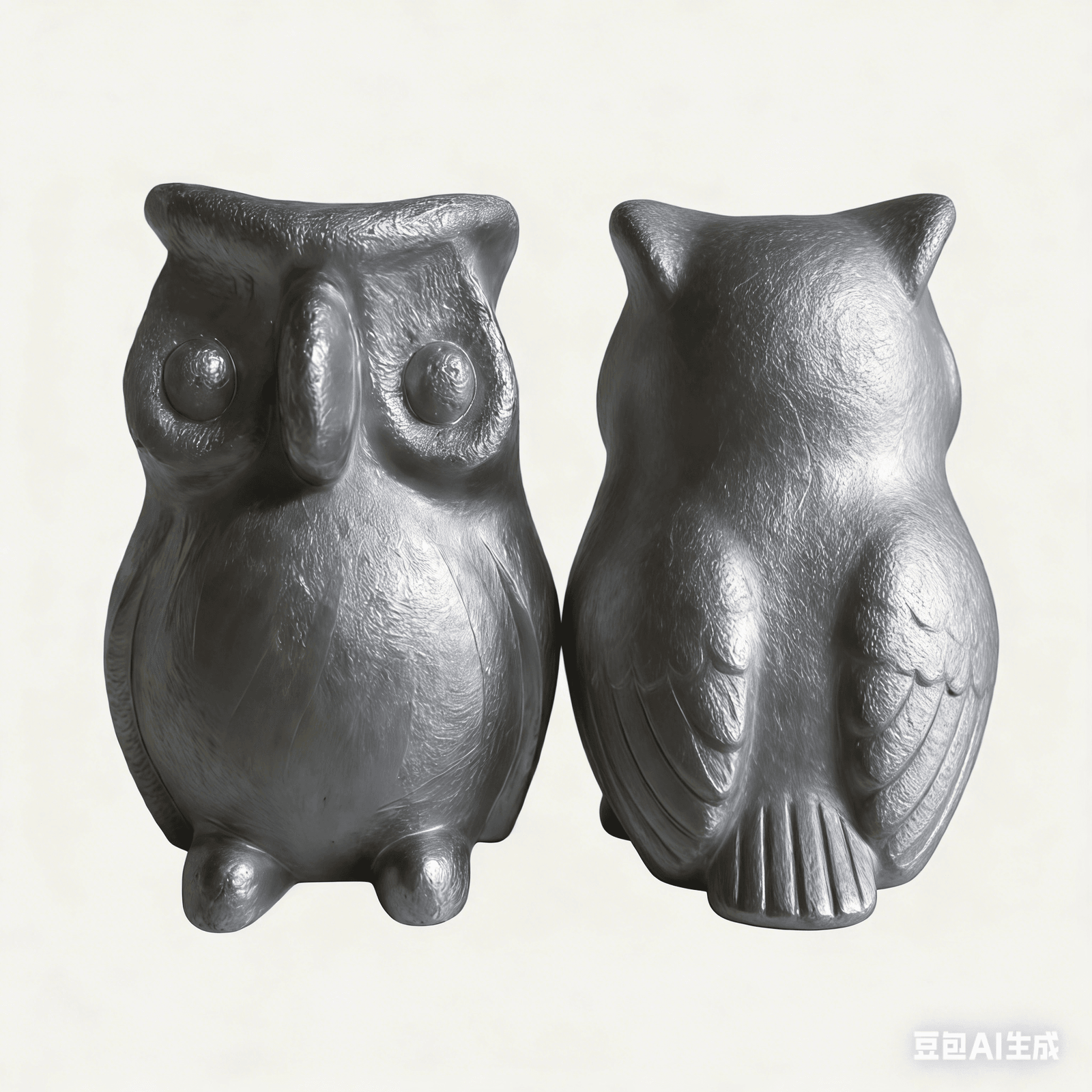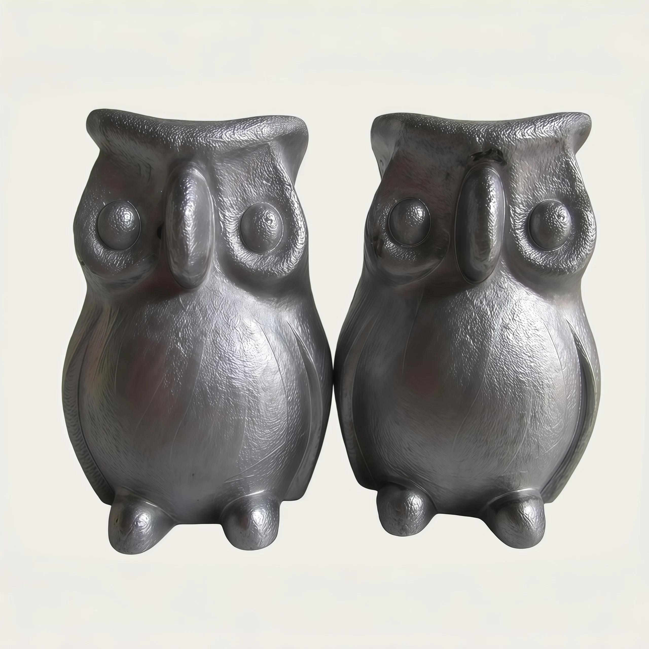 Metal Owl Figurine Rustic Silver Artisan Sculpture