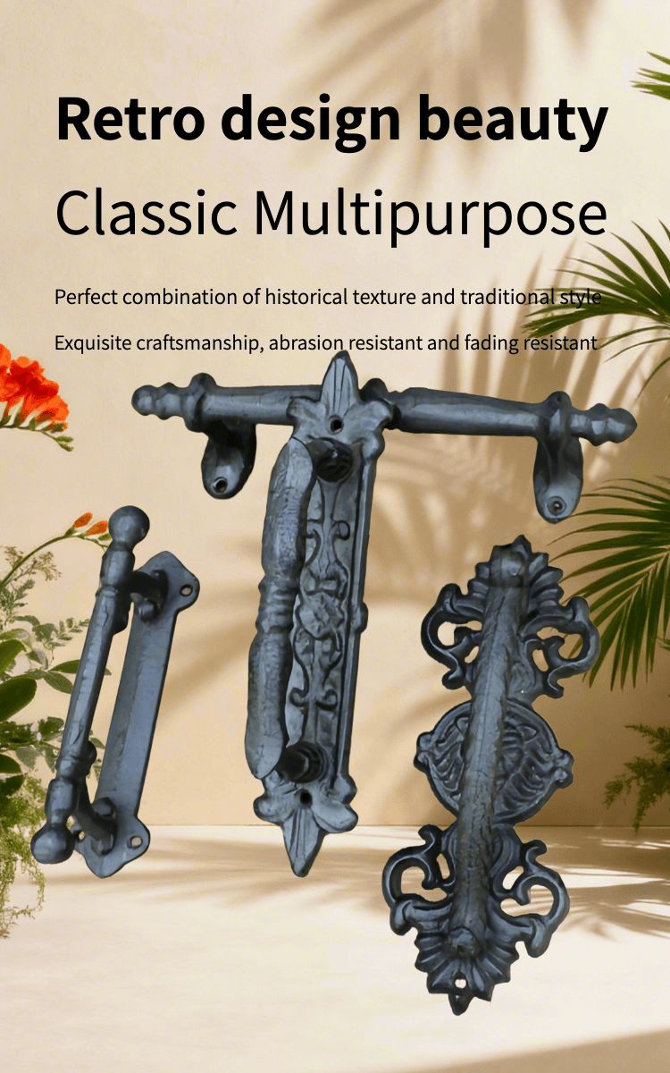 Elevate your home’s charm with these vintage cast iron door handles—crafted in an ornate antique style, featuring intricate carved details that exude retro elegance. Finished in rustic black, they complement farmhouse, colonial, or classic interior themes perfectly. Durable cast iron construction ensures long-lasting use, while the decorative design adds a distinctive, timeless touch to doors, cabinets, or wardrobes. Easy to install, these door pulls blend functionality with old-world aesthetics—perfect for anyone seeking to add character to their space.