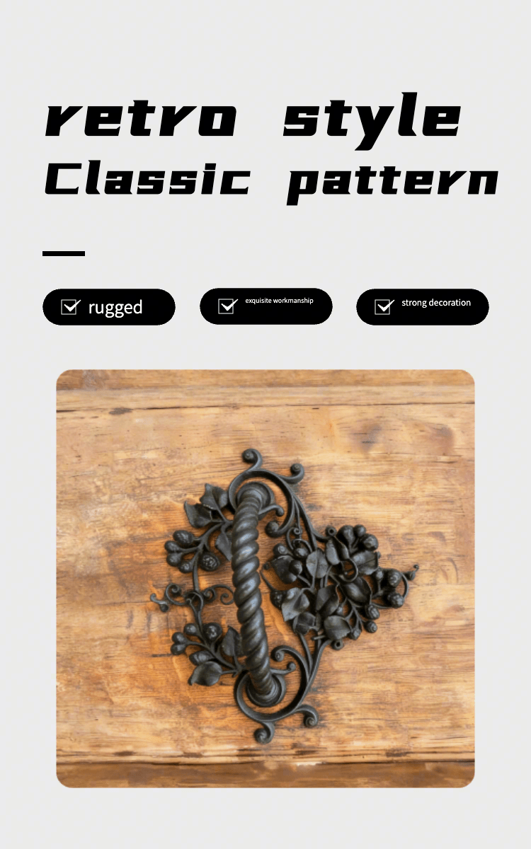 Retro Black Metal Decorative Door Handle for Rustic Home