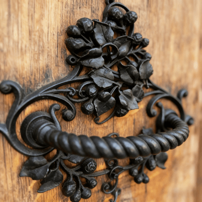 Elevate your space with this exquisitely crafted vintage cast iron floral door handle—a perfect blend of old-world charm and functional design. Featuring intricate floral and scrollwork details, this black metal door pull adds a touch of timeless elegance to rustic homes, cafes, vintage shops, or garden gates.