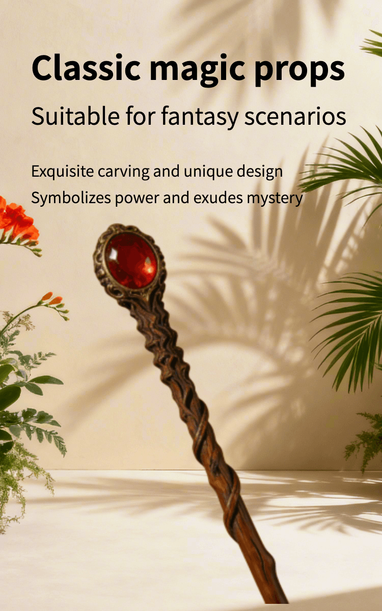 This handmade magic wand is crafted from premium ebony wood, featuring an exquisite bamboo-pattern carved design that adds a touch of natural wizardry to its appearance. Each piece is carefully shaped by artisans, ensuring a smooth, polished finish and durable structure.